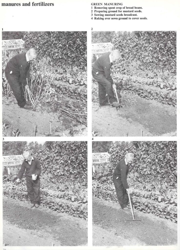Question to have the ability to obtain sufficient manure or composted vegetable waste one way is to grow green manure crops such as Mustard ,Italian Ryegrass broadcast at rate of 33g/m2 only preparation is light fork and raking and application of 33g/m2 of granular Nitrogen fertilizer these are dug in the ground when30cm tall if followed by vegetable crop 15g/m2 nitrogenous fertilizer should be applied