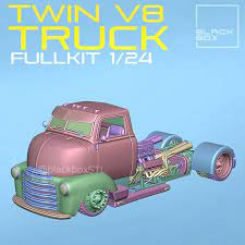 Below is the photo of the work in progress of a model for October 2025. This month I am building a Blackbox – Twin V8 Truck 3D printed