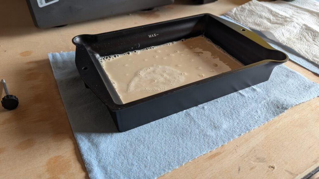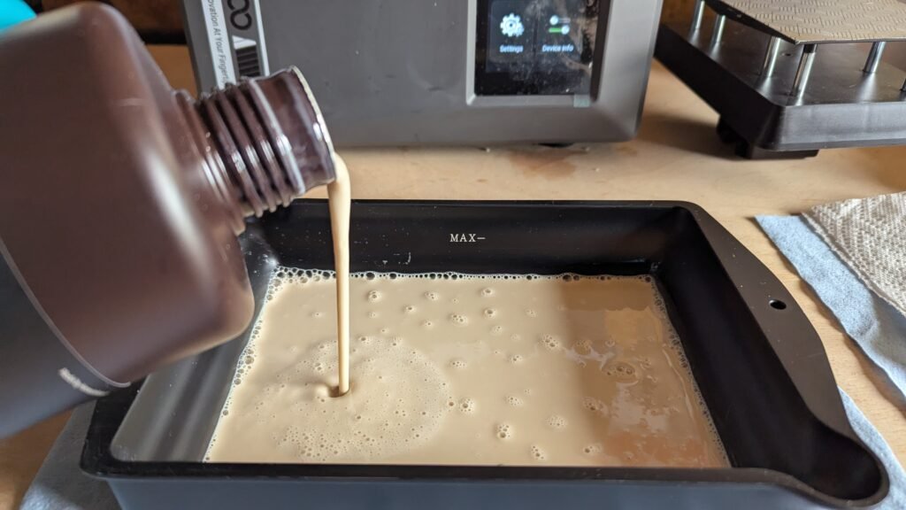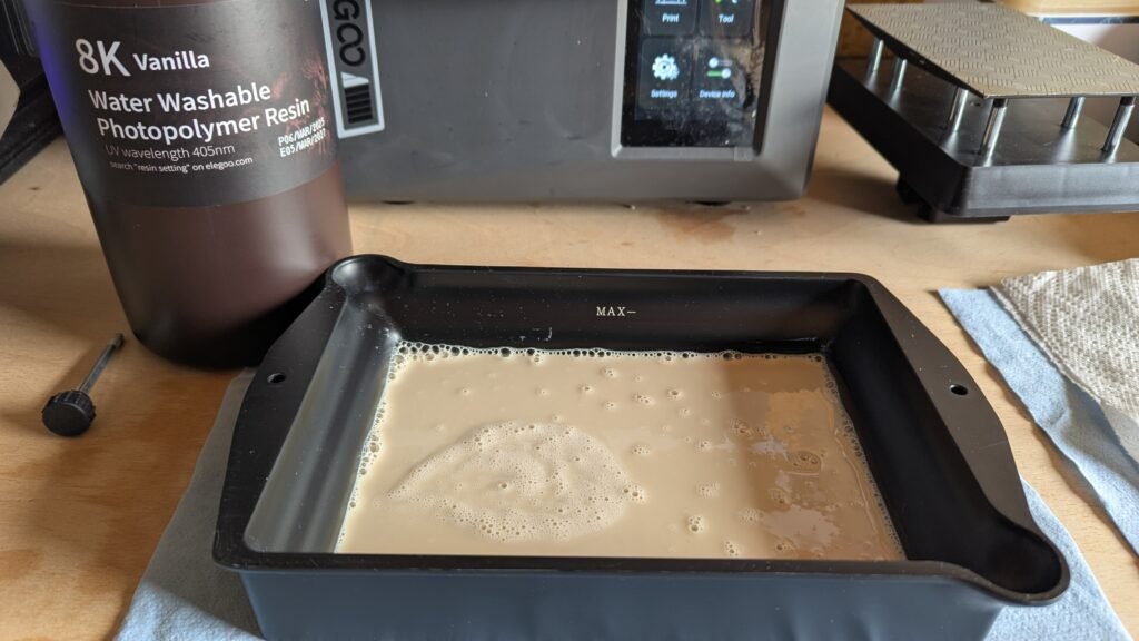 Now I have get up that I get the tank and have a look around and clean it to get away any left-over resin or dust, Then I get the resin out shake it then go to my computer set up what I am printing then get it ready,