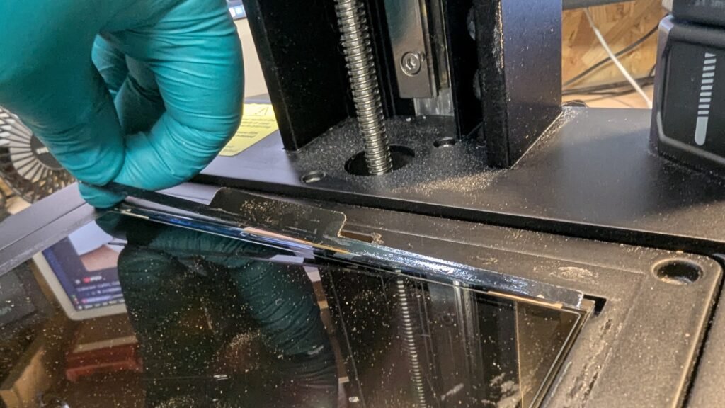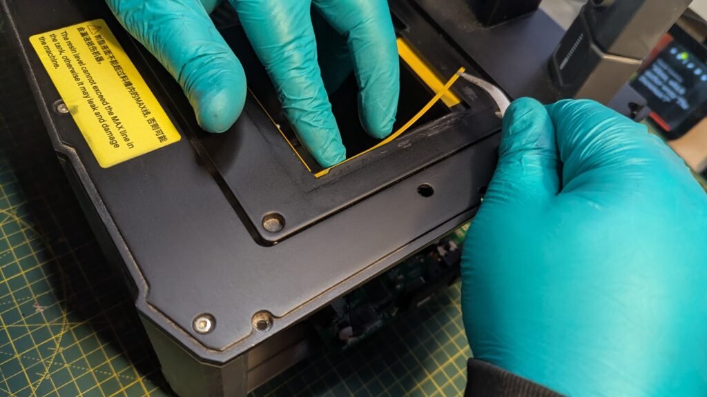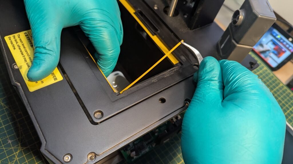 Remove the screws from the top of the printer where the tank for the resin gose and the built plate gose and using Allen keys then remove the screws from back and the side where the off and on button is with wifi and usb by unscrews using Allen keys Remove. Please don’t let the side just fall the wifi cable is bad and to thin and hard to get, Trust me I am now with out the wifi and camera for it. That will be a other blog. But at the moment from the 03/11/25 I have got now camera and wifi for it, So please be slow and careful